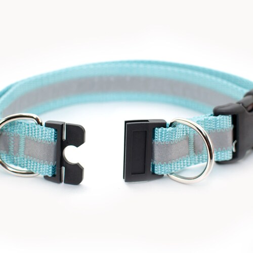 Personalized Breakaway Safety Dog Collar In Reflective Aqua Etsy